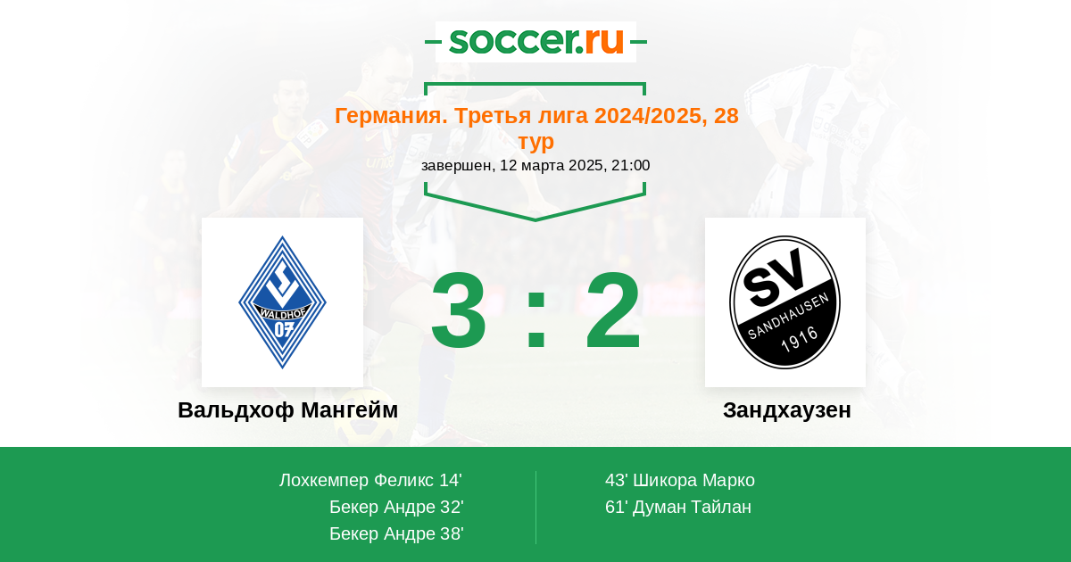 Протокол матча Вальдхоф Мангейм против Зандхаузен
