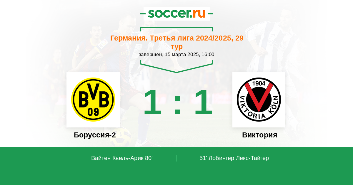 Протокол матча Боруссия-2 против Виктория