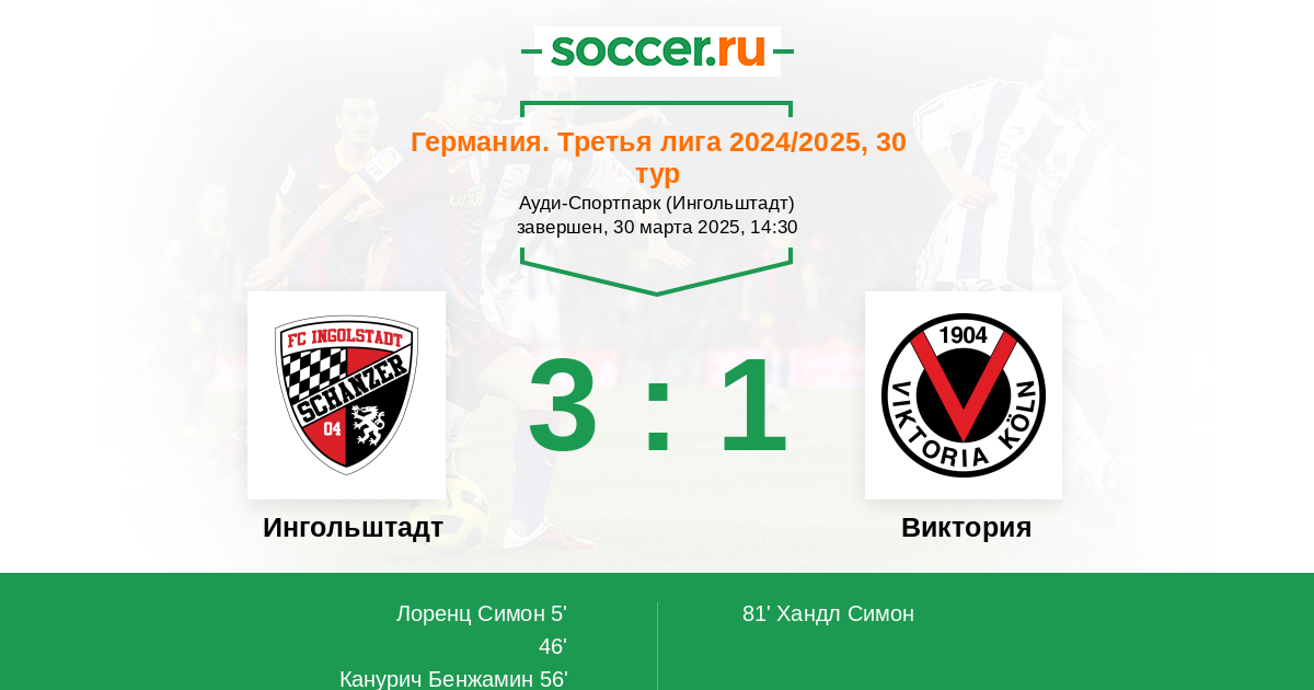 Протокол матча Ингольштадт против Виктория