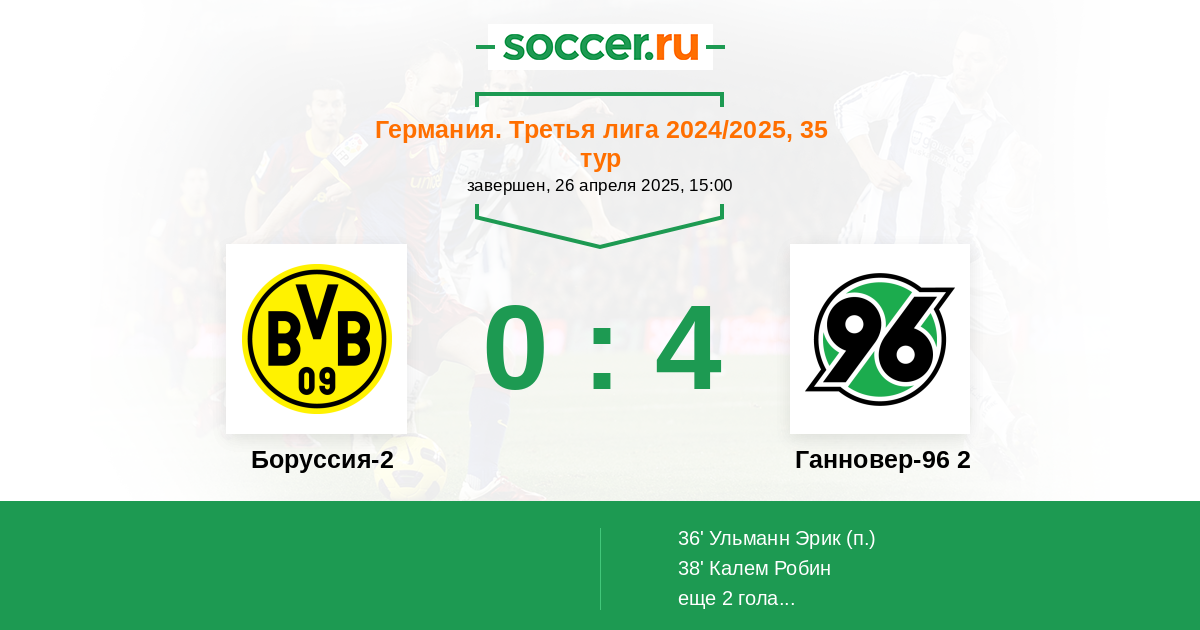 Протокол матча Боруссия-2 против Ганновер-96 2
