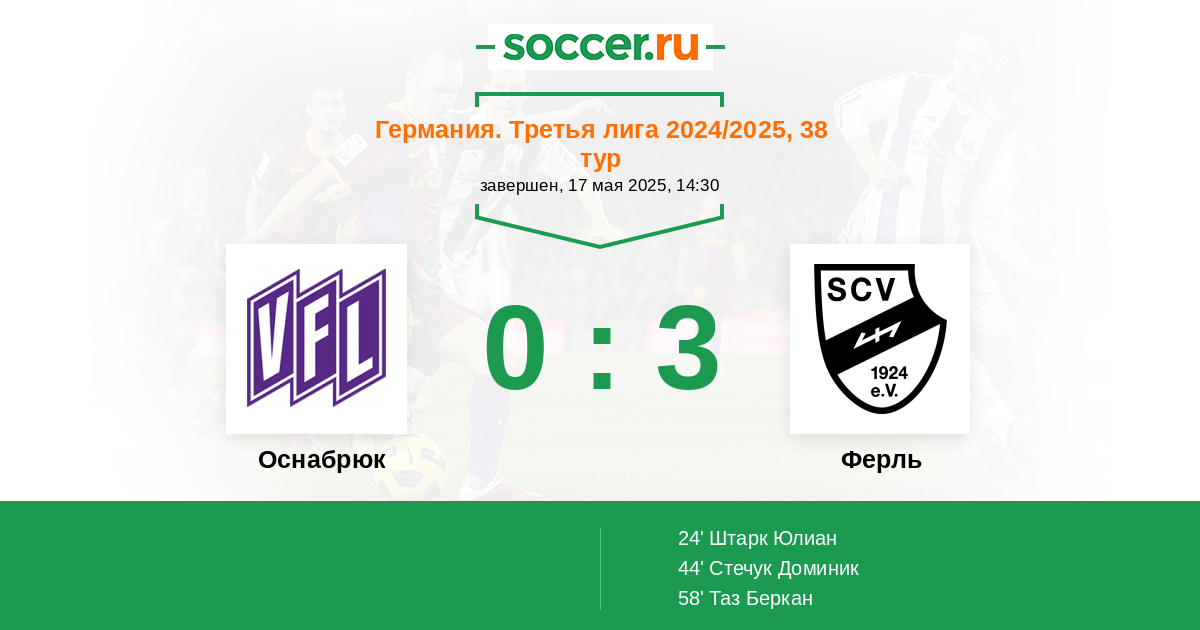 Протокол матча Оснабрюк против Ферль