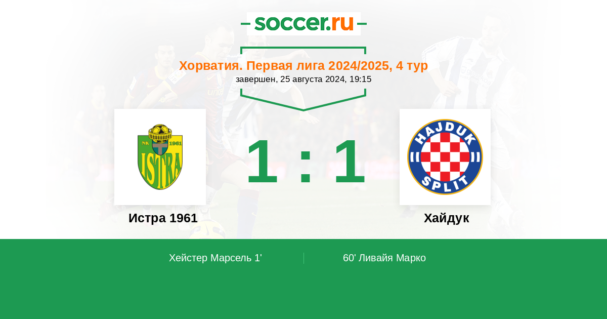 60' (1:1) Ливайя Марко (10) (S. Hrgovic)