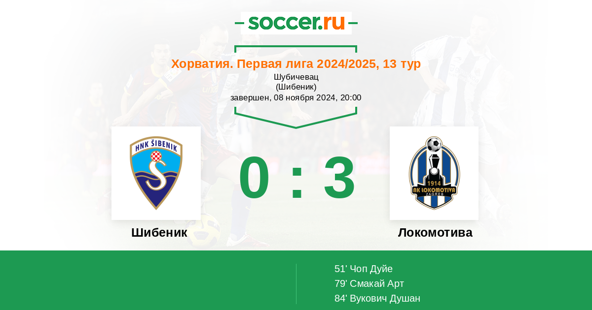 Протокол матча Шибеник против Локомотива