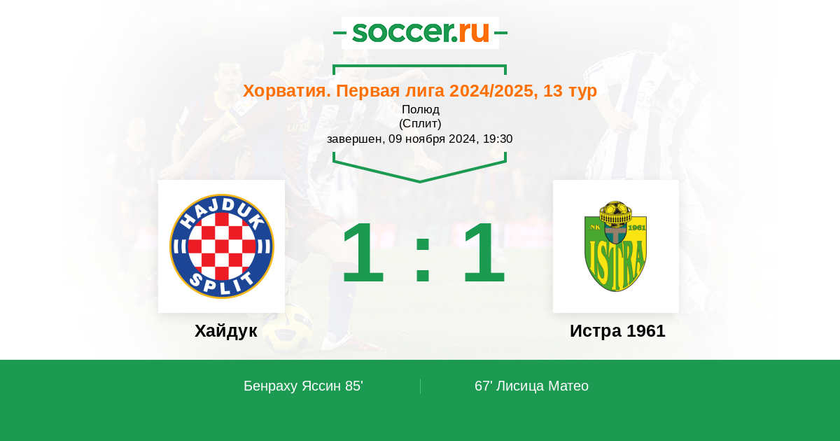 85' (1:1) Бенраху Яссин (45) (Ливайя Марко (10))