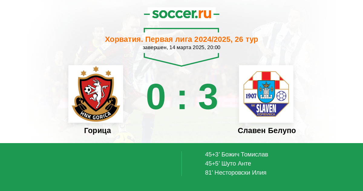 Протокол матча Горица против Славен Белупо