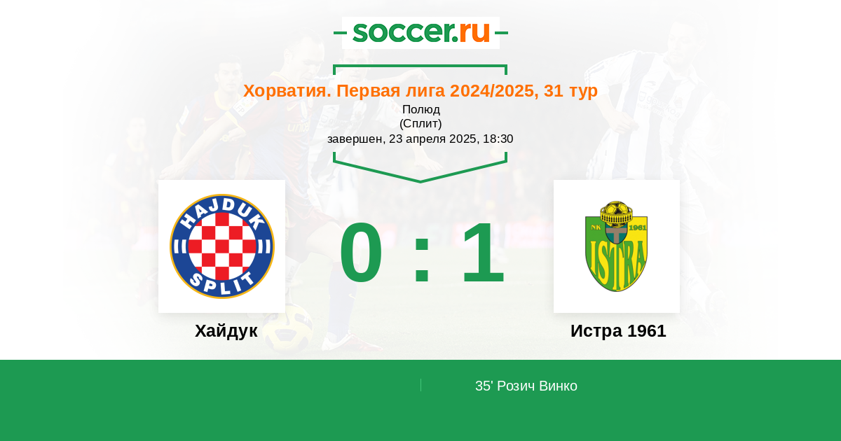 35' (0:1) Розич Винко (24) (Лисица Матео (11))