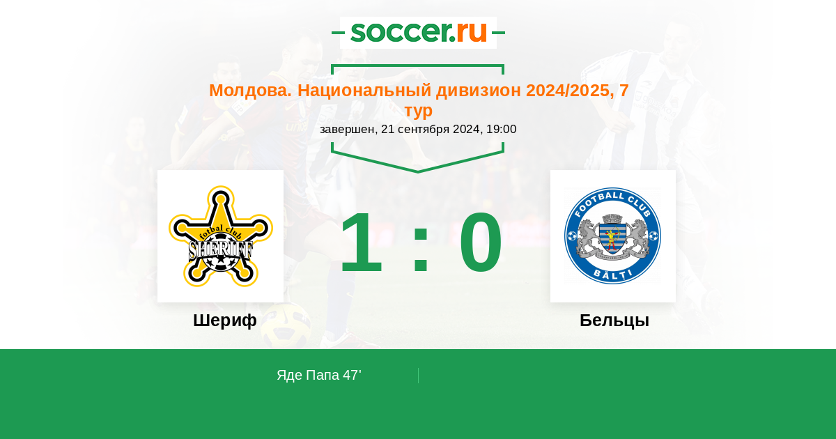 Протокол матча Шериф против Бельцы