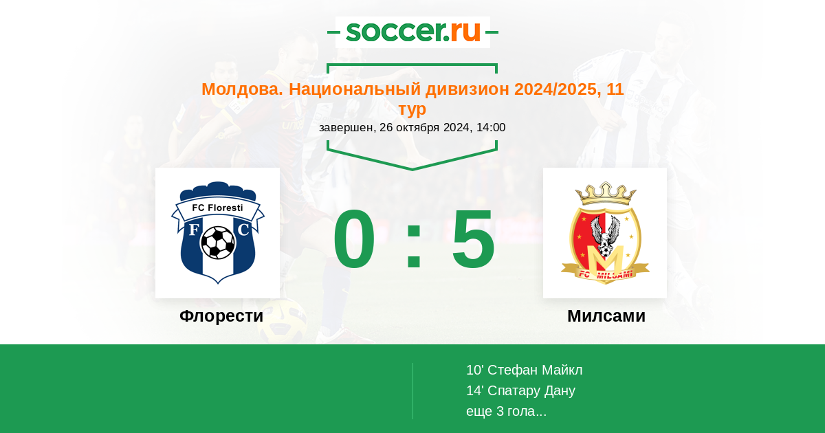 Протокол матча Флорести против Милсами