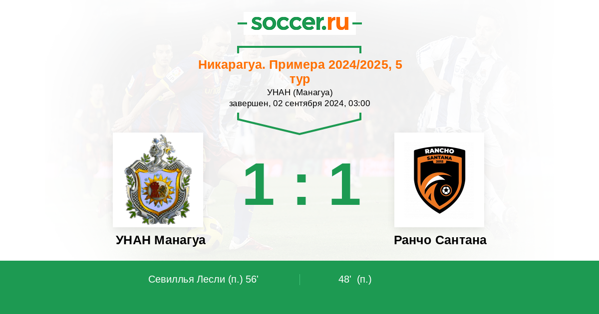 Протокол матча УНАН Манагуа против Ранчо Сантана