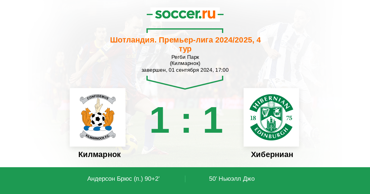 Протокол матча Килмарнок против Хиберниан