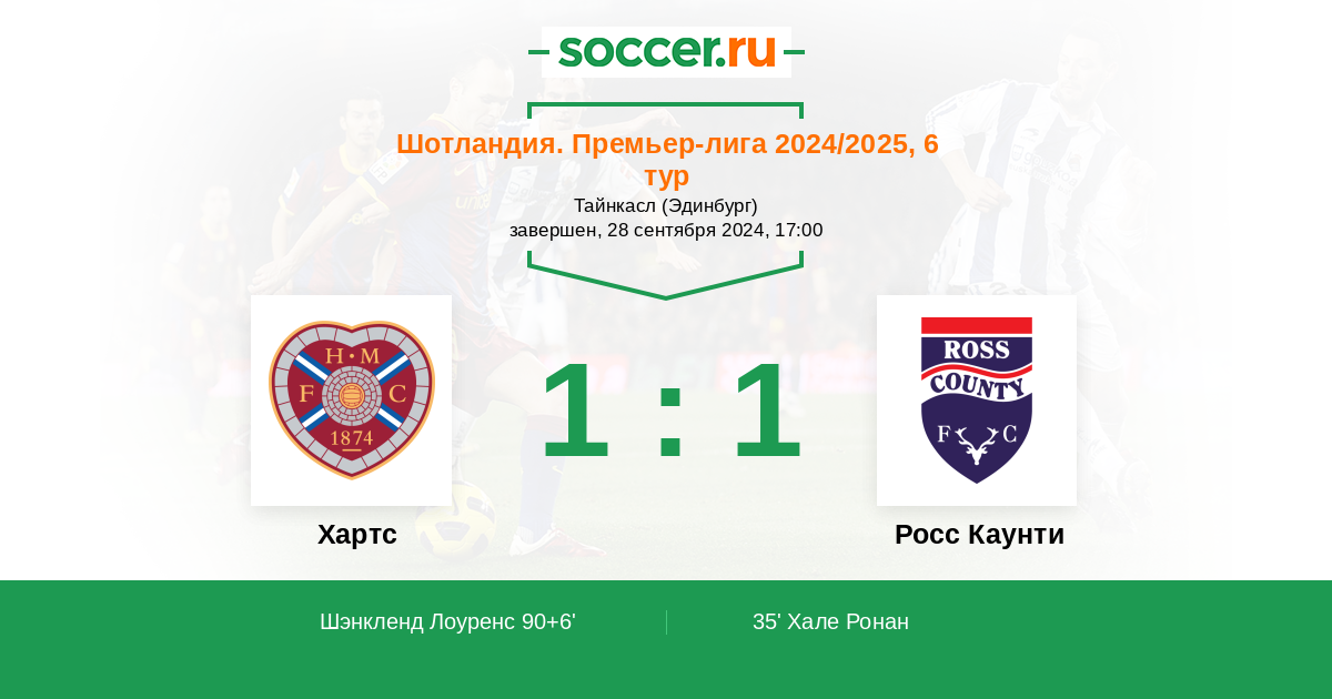Протокол матча Хартс против Росс Каунти