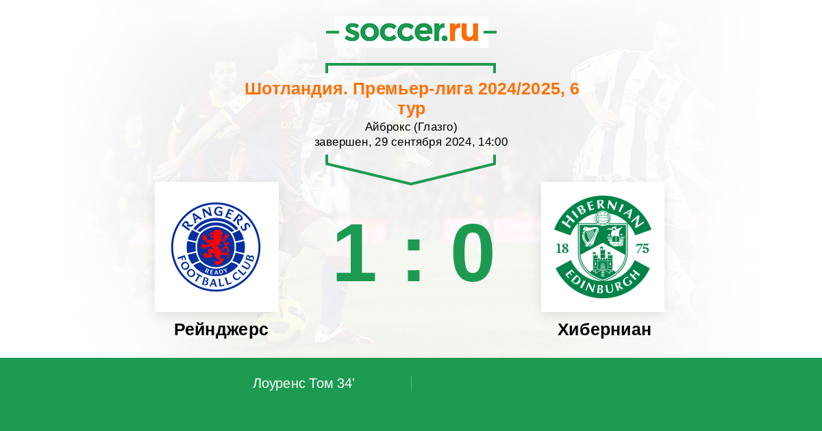 Протокол матча Рейнджерс против Хиберниан