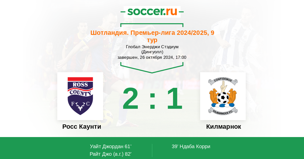 82' (2:1) Автогол Райт Джо (4)