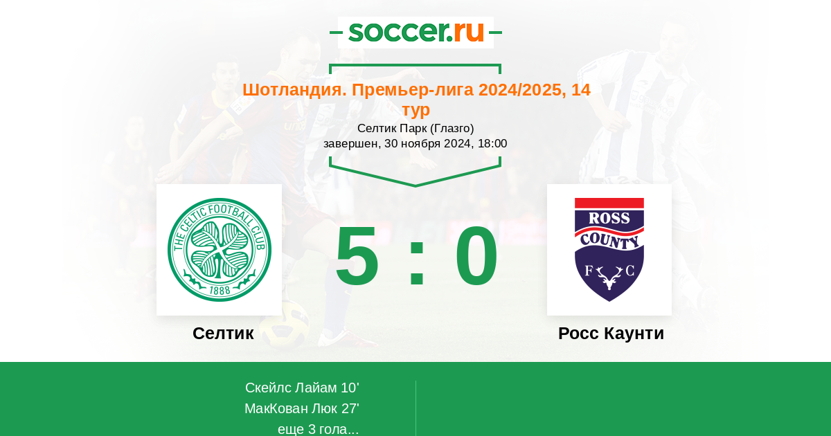 Протокол матча Селтик против Росс Каунти