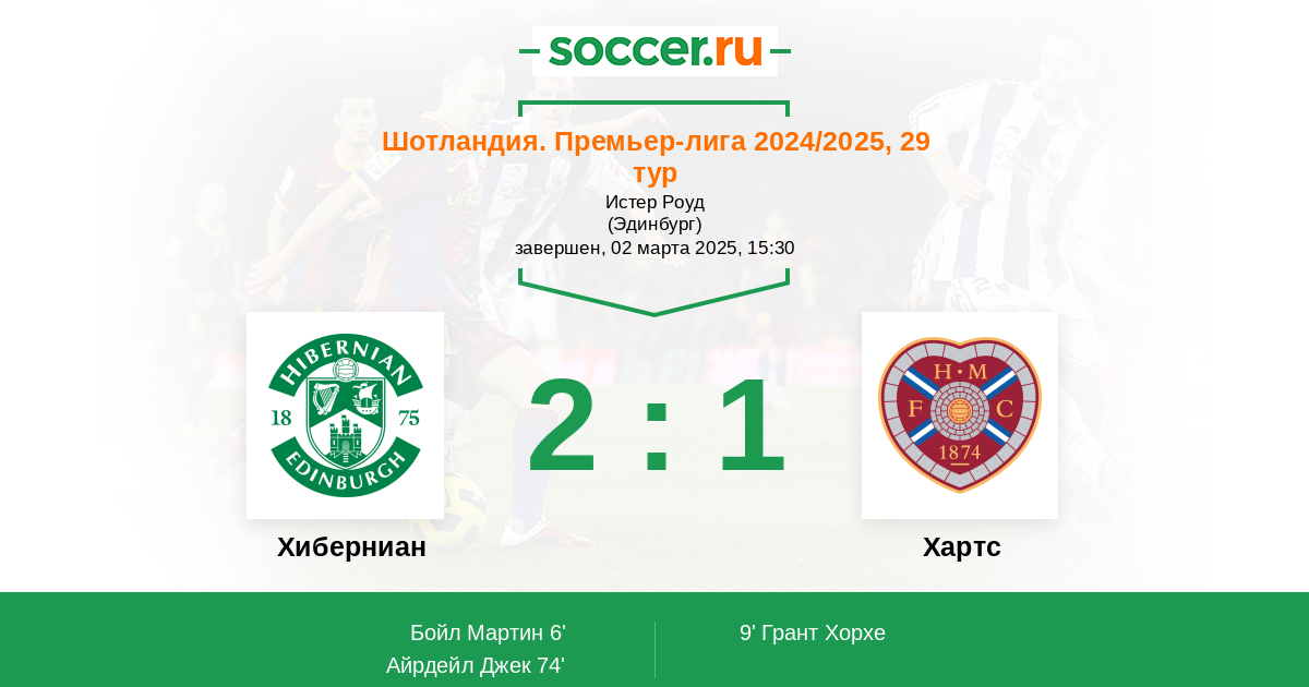 Протокол матча Хиберниан против Хартс