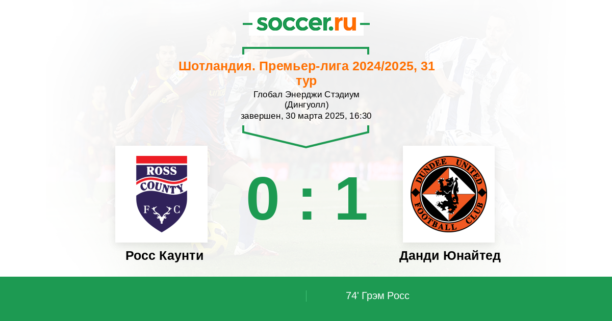 74’ 0:1 Грэм Росс