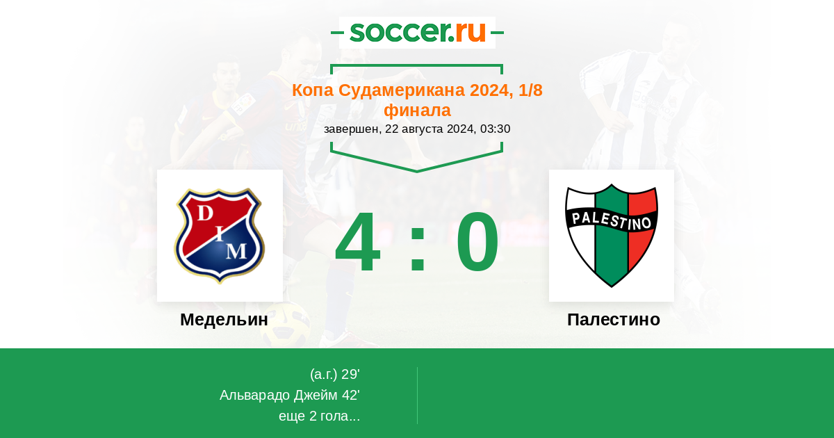 Протокол матча Медельин против Палестино