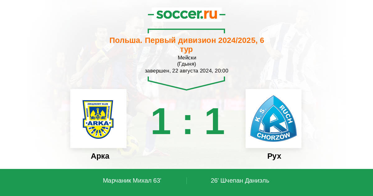 Протокол матча Арка против Рух