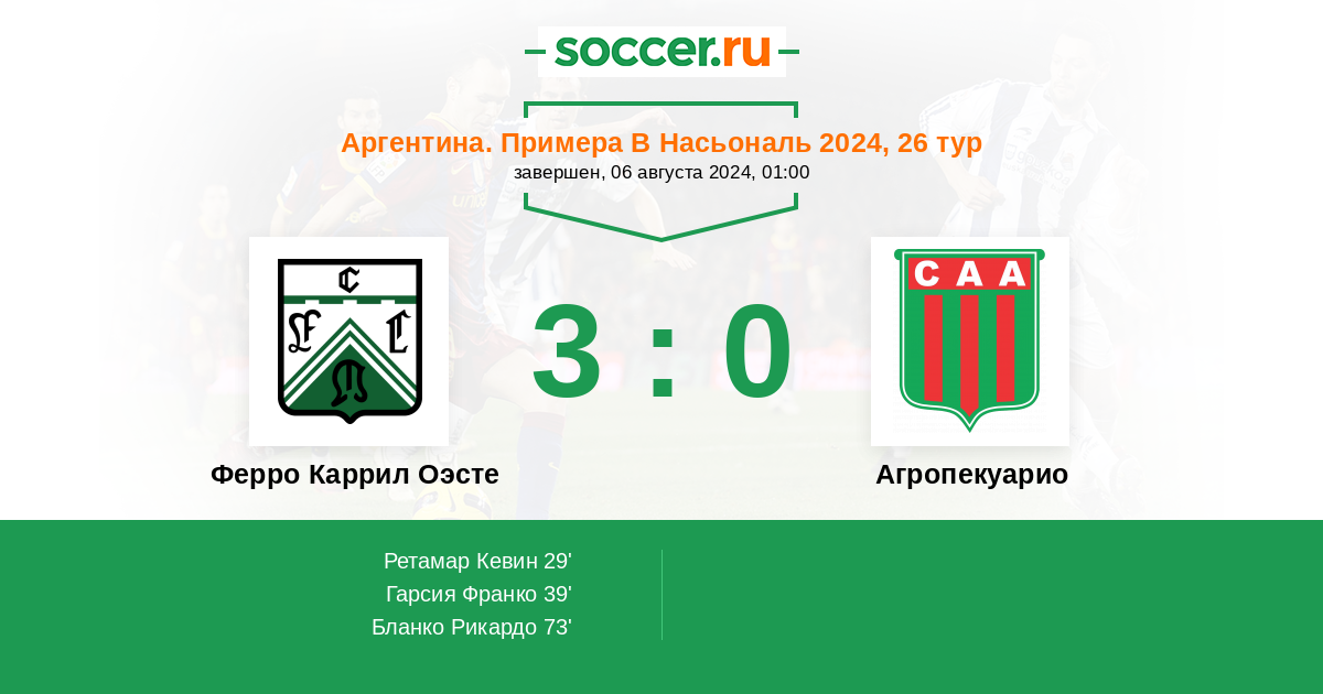 Протокол матча Ферро Каррил Оэсте против Агропекуарио