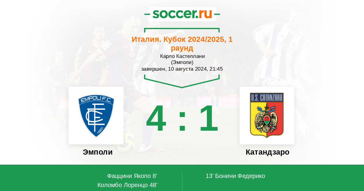 48' (2:1) Коломбо Лоренцо (29) (Эспозито Себастьяно (99))