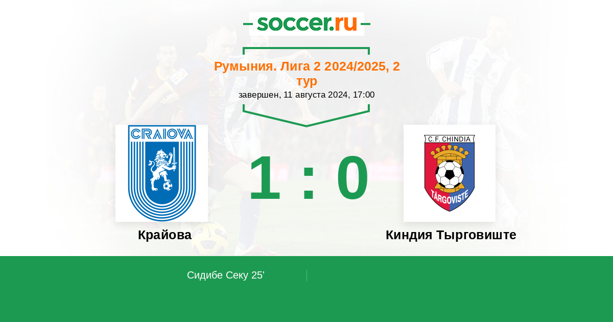 Протокол матча Крайова против Киндия Тырговиште