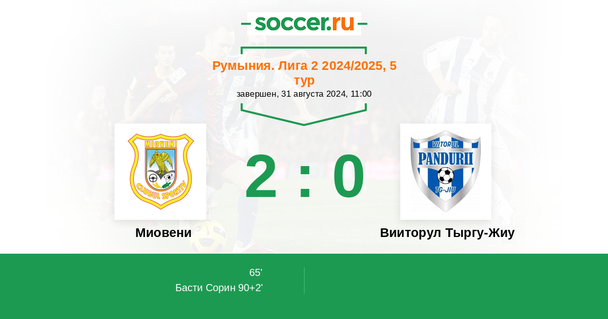 Протокол матча Миовени против Вииторул Тыргу-Жиу
