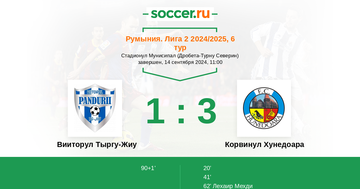 Протокол матча Вииторул Тыргу-Жиу против Корвинул Хунедоара