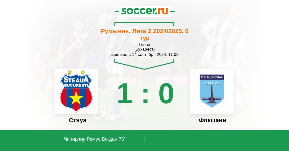 Протокол матча Стяуа против Фокшани