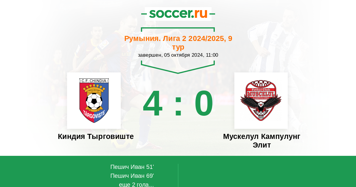 Протокол матча Киндия Тырговиште против Мускелул Кампулунг Элит