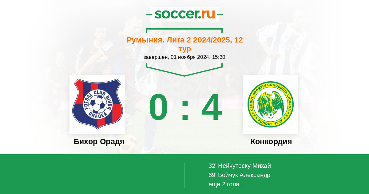 Протокол матча Бихор Орадя против Конкордия