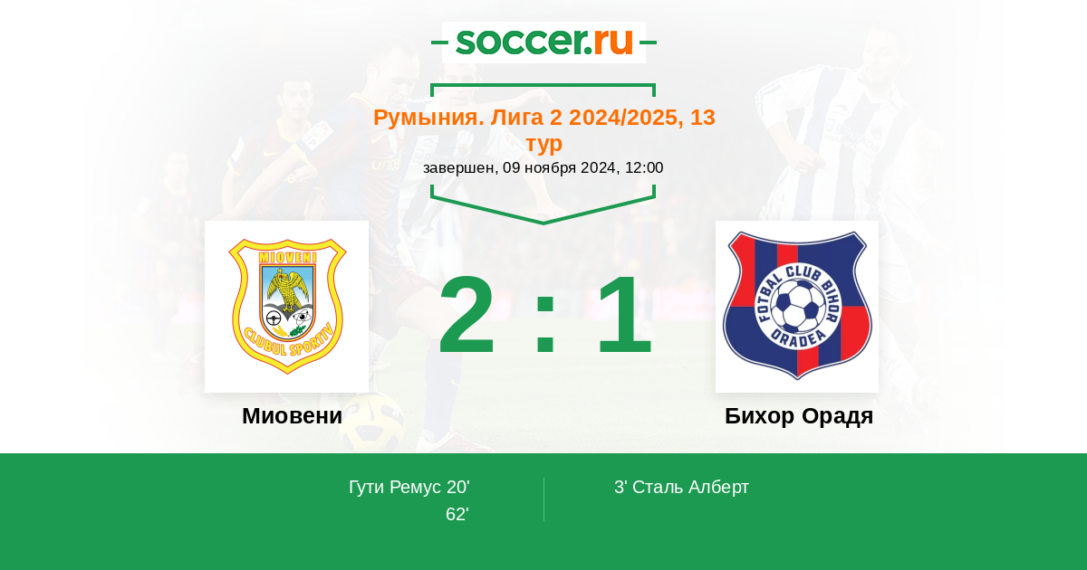 Протокол матча Миовени против Бихор Орадя