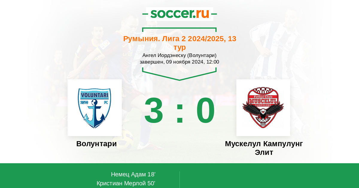 Протокол матча Волунтари против Мускелул Кампулунг Элит