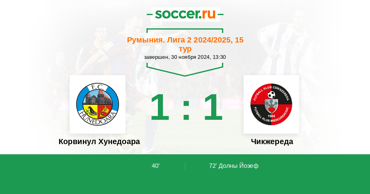 Протокол матча Корвинул Хунедоара против Меркуря-Чук Чикжереда