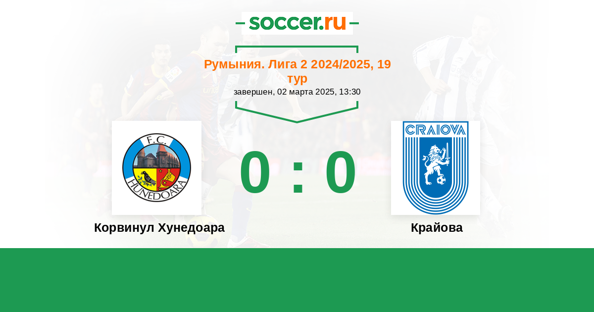 Протокол матча Корвинул Хунедоара против Крайова