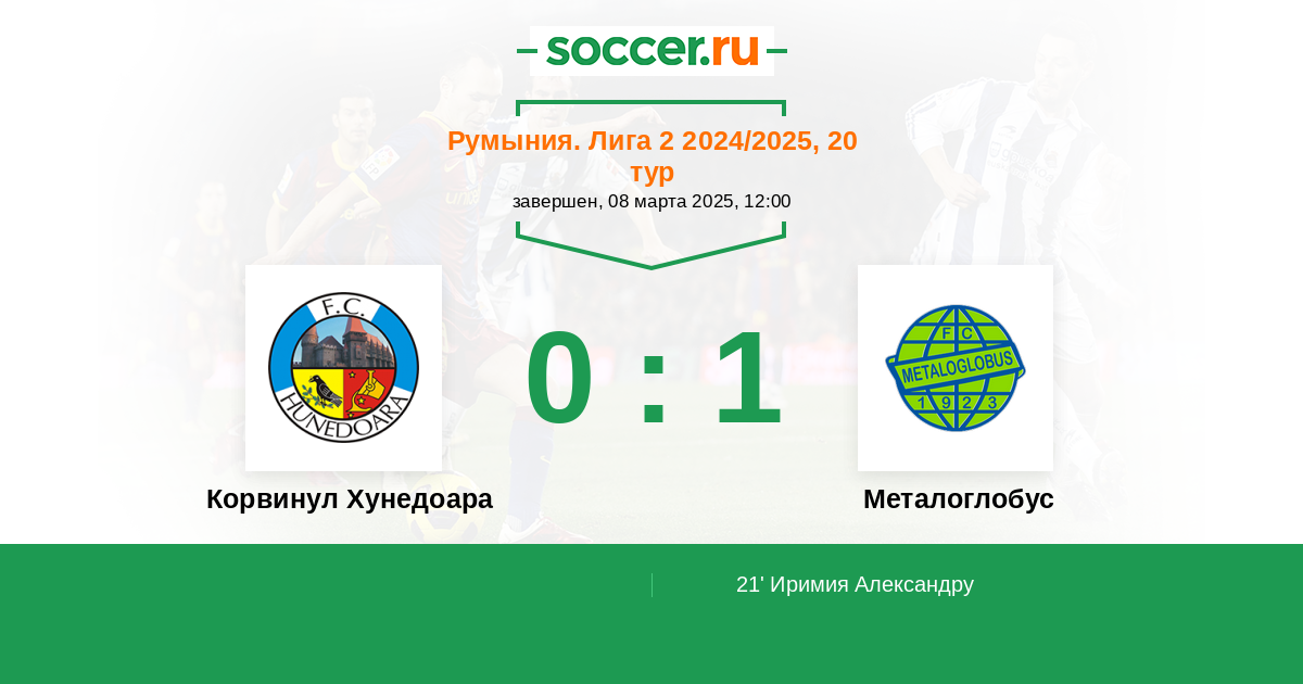 Протокол матча Корвинул Хунедоара против Металоглобус