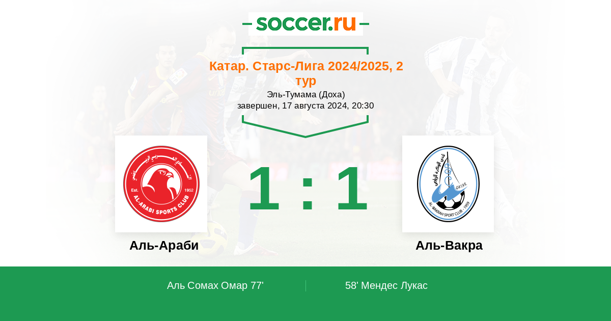 Протокол матча Аль-Араби против Аль-Вакра
