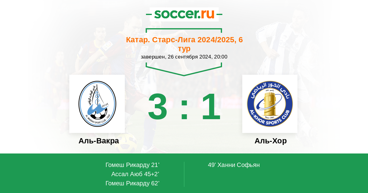Протокол матча Аль-Вакра против Аль-Хор