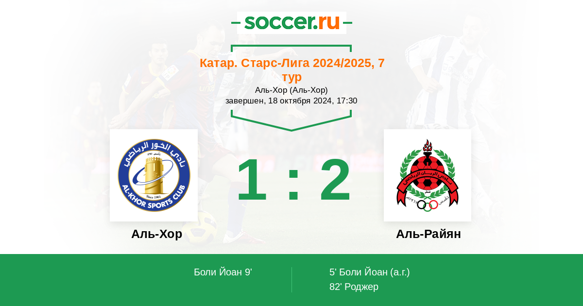Протокол матча Аль-Хор против Аль-Райян