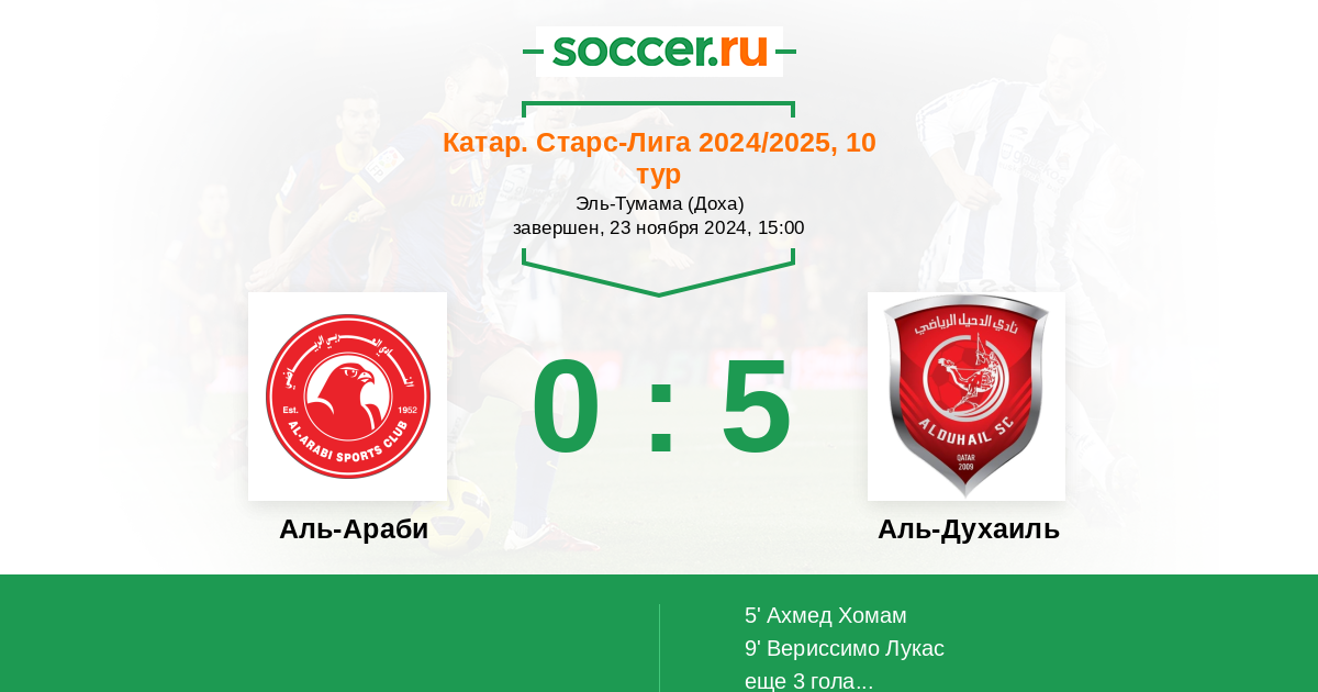 Протокол матча Аль-Араби против Аль-Духаиль