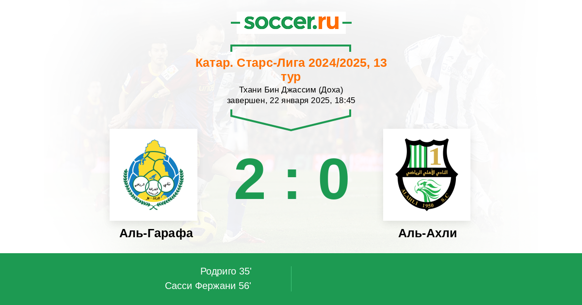 Протокол матча Аль-Гарафа против Аль-Ахли