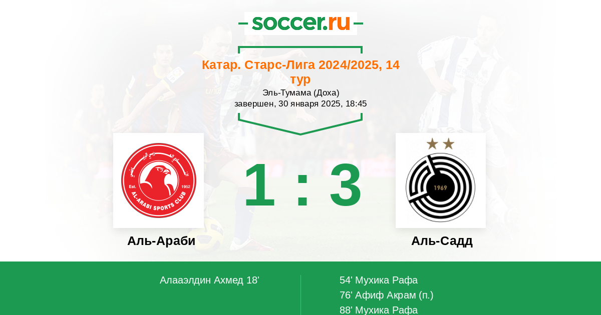 Протокол матча Аль-Араби против Аль-Садд