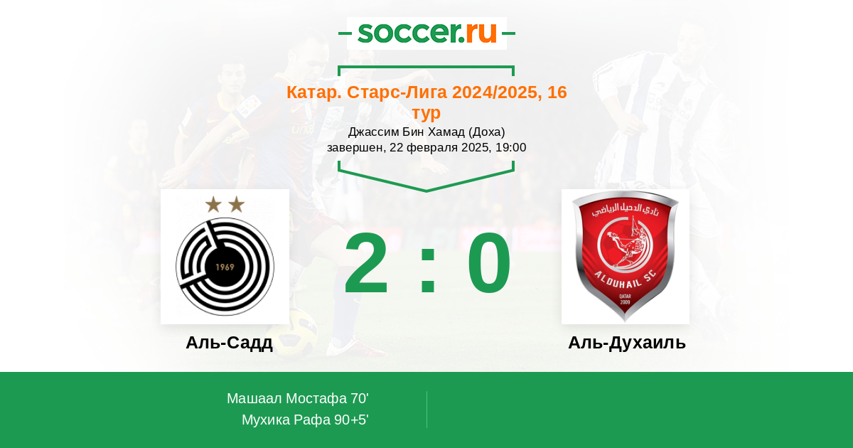 Протокол матча Аль-Садд против Аль-Духаиль