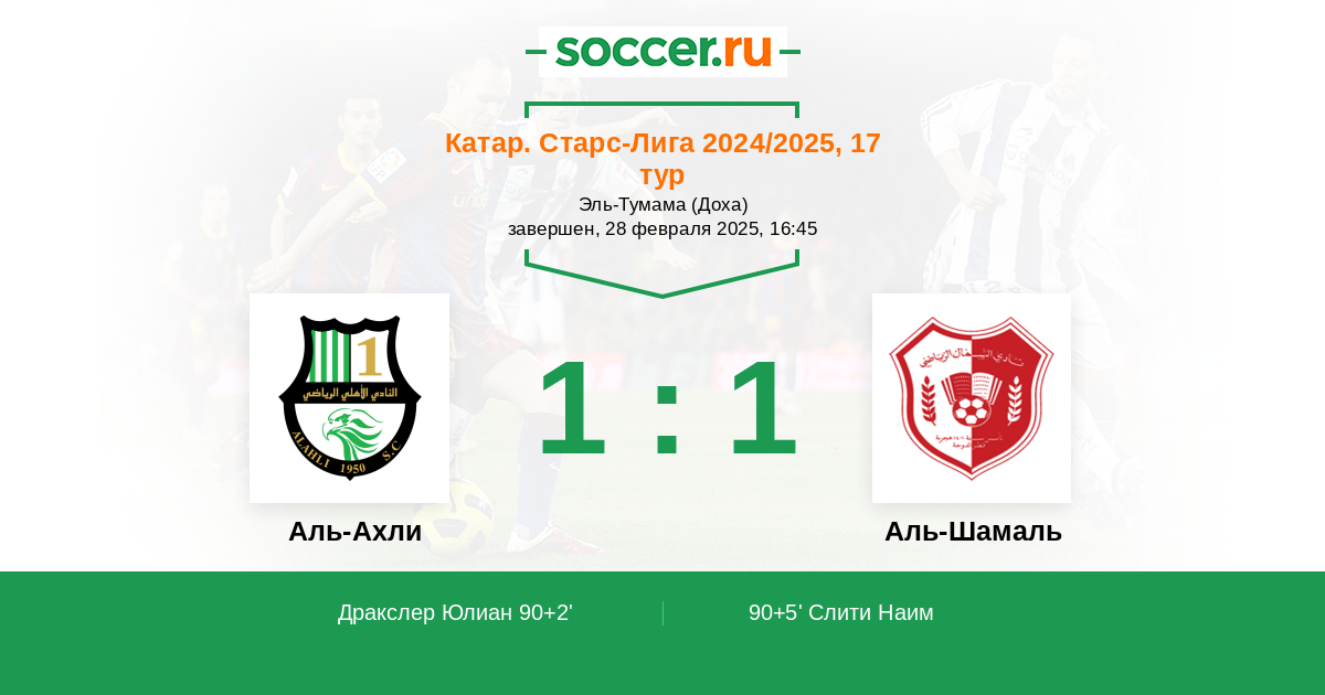 Протокол матча Аль-Ахли против Аль-Шамаль