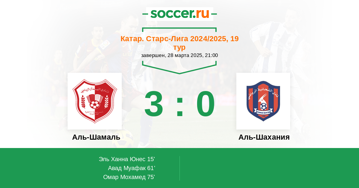 Протокол матча Аль-Шамаль против Аль-Шахания