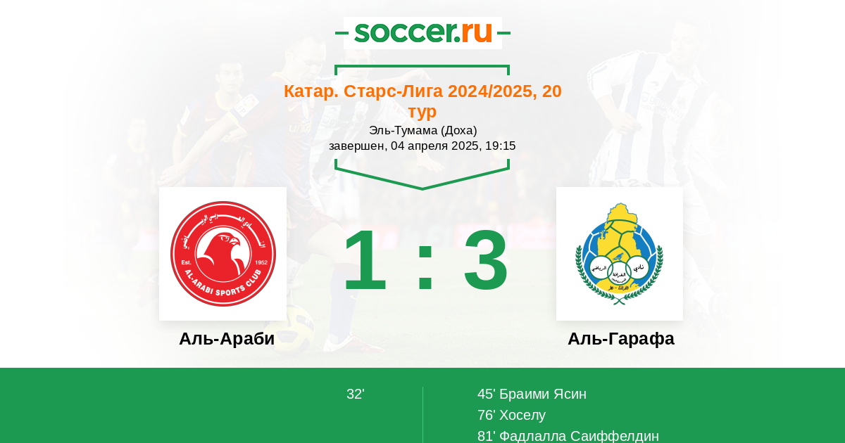Протокол матча Аль-Араби против Аль-Гарафа
