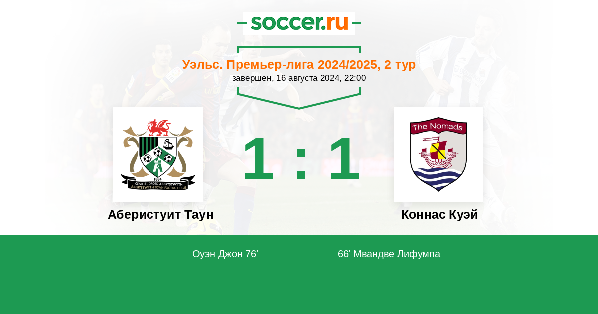 Протокол матча Аберистуит Таун против Коннас Куэй