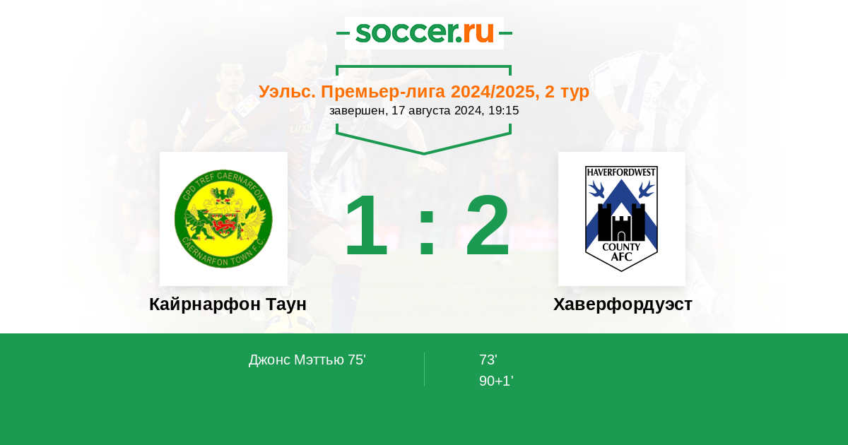 Протокол матча Кайрнарфон Таун против Хаверфордуэст