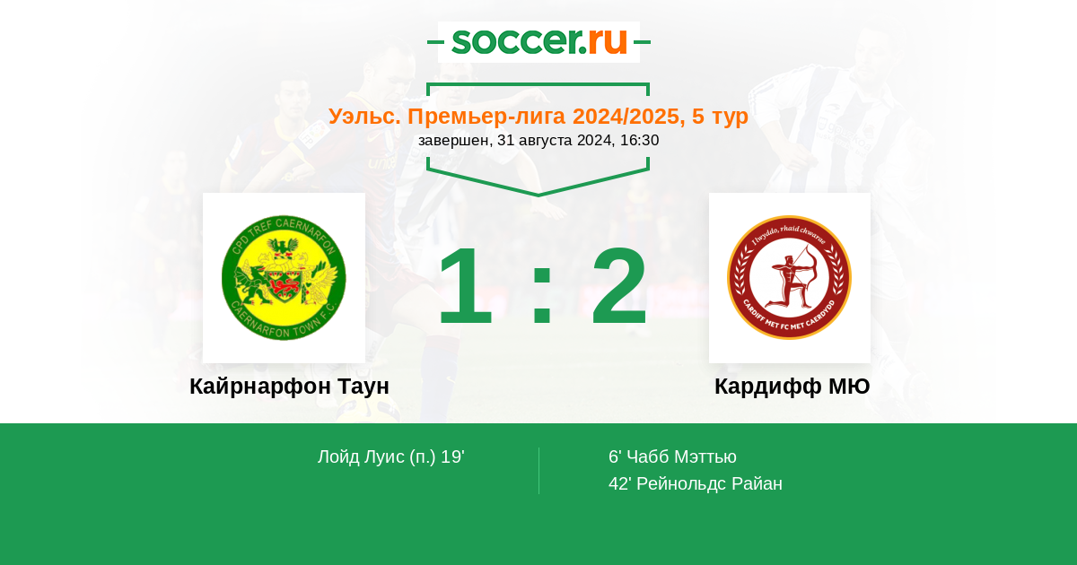 Протокол матча Кайрнарфон Таун против Кардифф МЮ