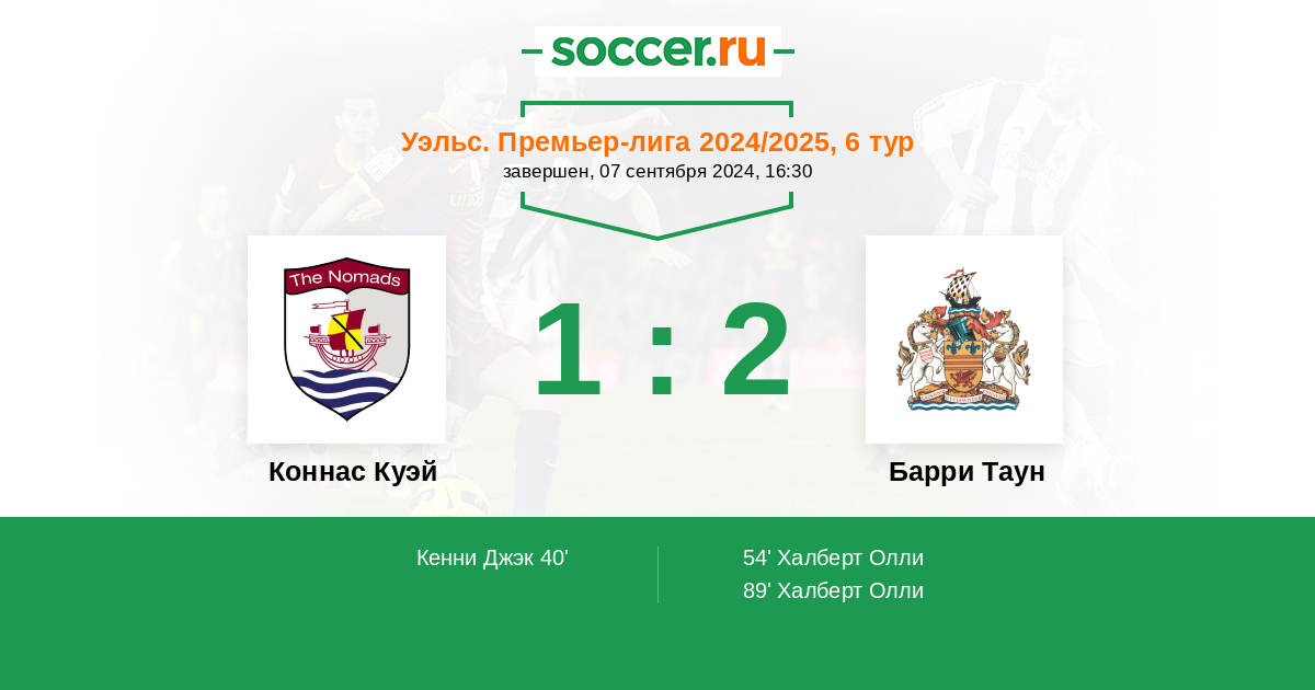 Протокол матча Коннас Куэй против Барри Таун