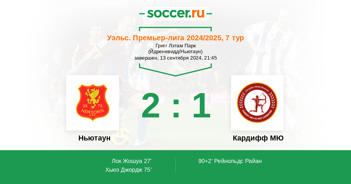 Протокол матча Ньютаун против Кардифф МЮ